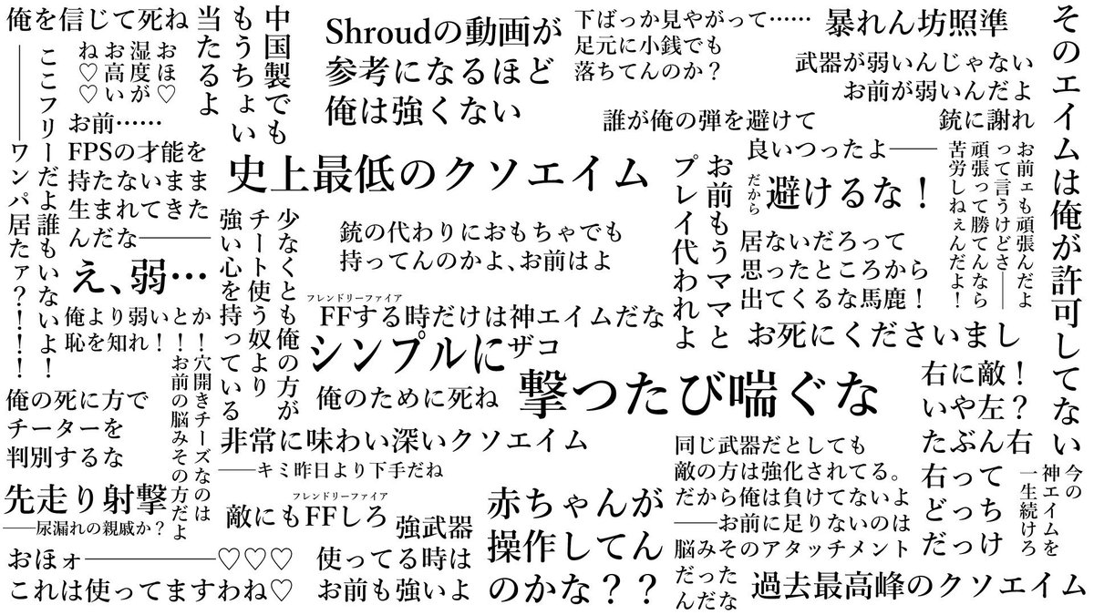 煽りメッセージが来たら たまに(よく?)受け取るゲーム後の煽りメッセージ。 大体のメッセージは 「オマエくそ野郎、このチート野郎がふざけんなチーター」 (やたらチーターと煽られる笑)みたいな感じですよね笑 「煽るなら煽られる、ブーメランになる煽りをする、気心の知れた仲のみで煽る」 ゲーミングお嬢様の格言、心に染みるわぁ pictwittercom/PLJ8SYbOFQ — サルヴぁ (@tw5_saru) 個人的には格ゲーの煽りはアリ派だ 勿論自分から仕掛けることはないが やられたらやり返す されたら当然ムカつく訳で だから煽り返す訳である 死体蹴りであったり屈伸 アピールなどなど 煽りの種類は沢山ある その中でも1番面白いのはメッセージだ